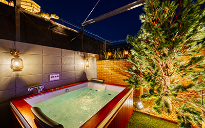 露天風呂やサウナ、ハンギングチェアなど、”癒しのワンシーン”をテーマにしたお部屋をご用意。